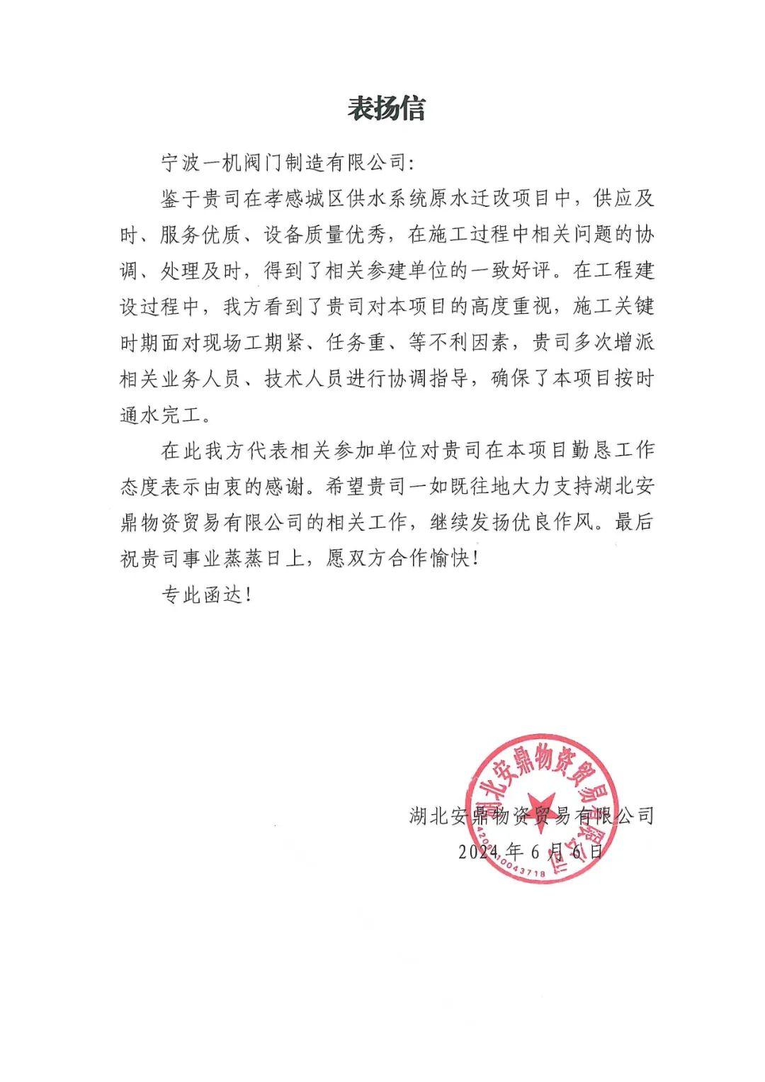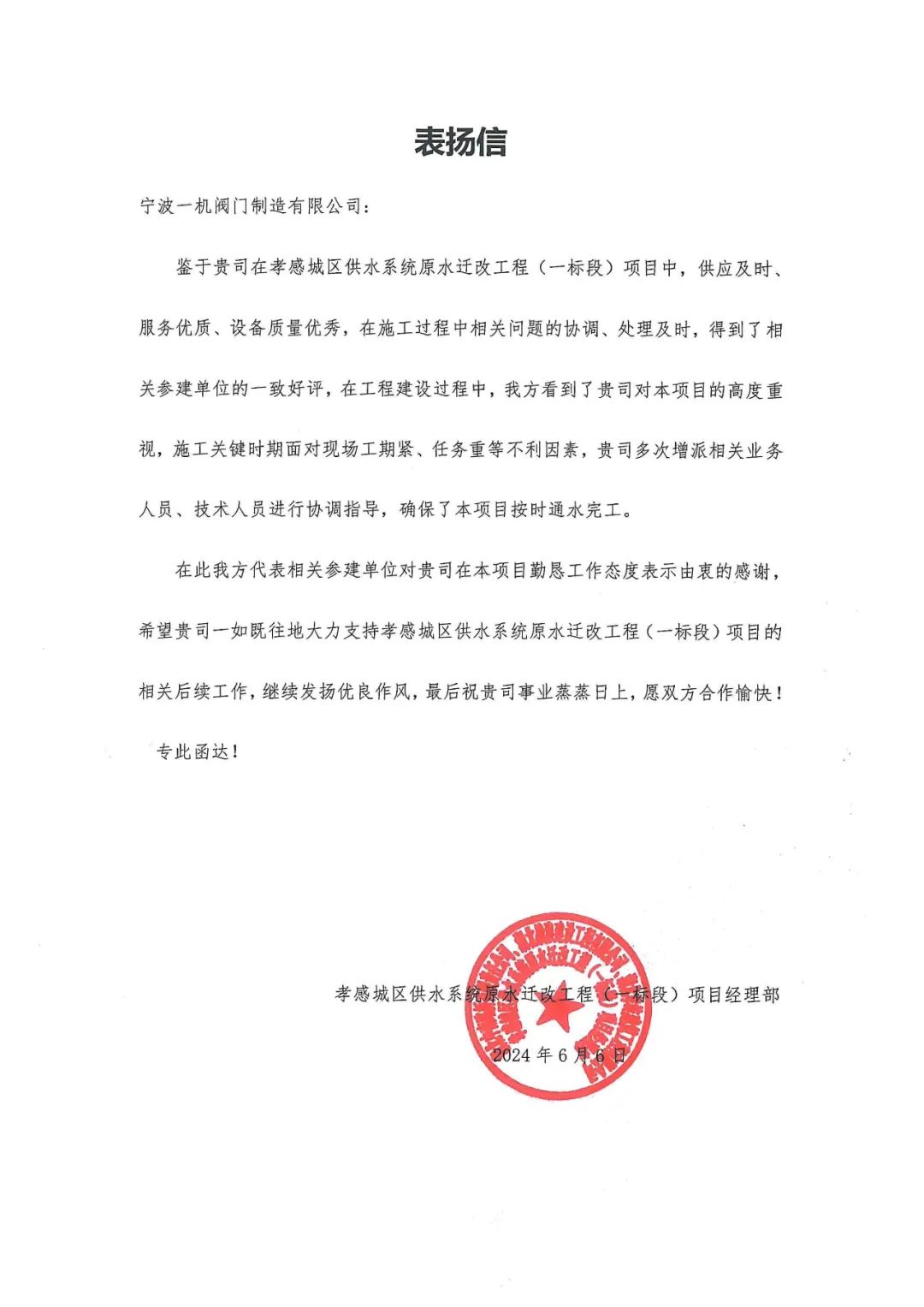付出總有回報,客戶對我們的認可是對我們最大的鼓勵!讓我們以這份榮耀為新的起點,繼續(xù)努力,不斷創(chuàng)新,為客戶創(chuàng)造更多的價值,為行業(yè)發(fā)展貢獻更大的力量。讓一機閥門的榮耀在歲月的長河中熠熠生輝,永不褪色!在這個特別的 2024 年 6 月6日,讓我們一起為一機閥門的榮耀歡呼,一起期待更加輝煌的明天!